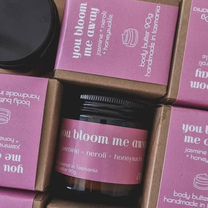 You Bloom Me Away: The air is crisp, the sun is shining, and all the flowers are starting to bloom - Hello Spring! This candle has a lovely soft scent blend of florals, with Japanese Honeysuckle being the standout. It's like a fresh bunch of flowers in your home every day - without the upkeep! Notes of jasmine, neroli & honeysuckle.